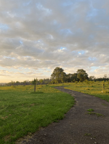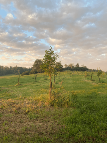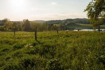 Karavanové stání se nachází v mladém ořechovém sadu s idylickým výhledem na rybník a do pastvin.